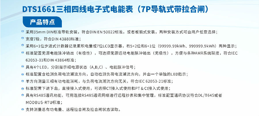 DDS1661三相四線電子式電能表(7P導(dǎo)軌式帶拉合閘)