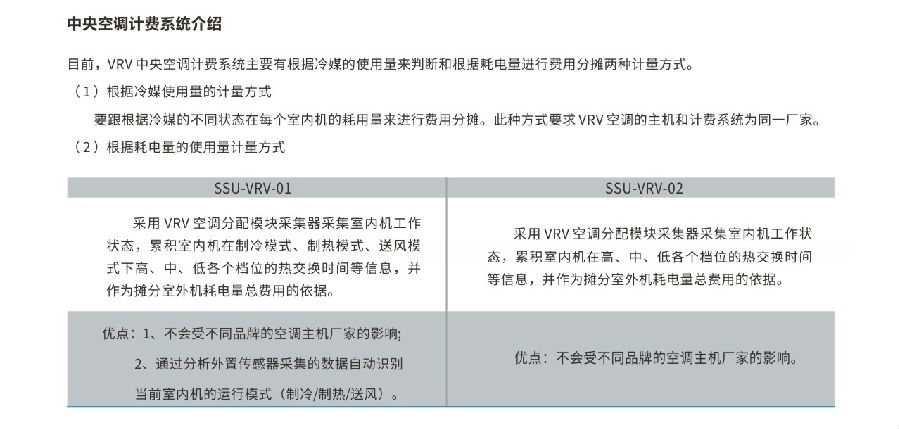 SSU-VRV空調(diào)分配模塊是基于BSH2000綜合計費系統(tǒng)的多聯(lián)機(jī)空調(diào)系統(tǒng)VRV的計量模塊。SSU-VRV空調(diào)分配模塊針對VRV中央空調(diào)系統(tǒng)的特點,通過分析外置傳感器采集的數(shù)據(jù)自動識別當(dāng)前室內(nèi)機(jī)的運行模式(制冷/制熱/送風(fēng)),通過分析內(nèi)置傳感器采集的數(shù)據(jù)自動識別室內(nèi)機(jī)當(dāng)前工作的檔位(高檔/中檔/低檔),模塊根據(jù)室內(nèi)機(jī)的運行模式、工作檔位自動切換計量模式,實現(xiàn)不同模式,不同檔位的計量。SSU-VRV空調(diào)分配模塊支持RS485通訊接口,通過區(qū)域管理器FMU和系統(tǒng)管理軟件可以對模塊進(jìn)行遠(yuǎn)程管理,管理者可根據(jù)實際情況,通過系統(tǒng)管理軟件遠(yuǎn)程管理SSU-VRV空調(diào)分配模塊,實現(xiàn)室內(nèi)機(jī)電源管理,計量收費,欠費停機(jī)等功能。