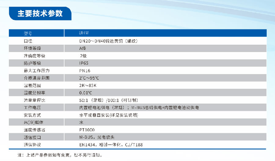 210UHM系列超聲波熱量表口徑范圍:DN20-DN40