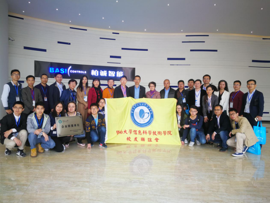 2017年3月18日,在暨南大學(xué)信息學(xué)院校友聯(lián)誼會(huì)的組織下,信息學(xué)院領(lǐng)導(dǎo)和校友共約30人,蒞臨廣州柏誠(chéng)智能科技有限公司參觀考察。參與這次活動(dòng)的領(lǐng)導(dǎo)有信息學(xué)院的肖東勝副書(shū)記、電子工程系主任劉偉平教授,王思明教授、肖璋教授和丘潔飛老師,中國(guó)電信廣州越秀分公司賴(lài)宇鋒書(shū)記等各行各業(yè)的翹楚校友以及在讀校友。