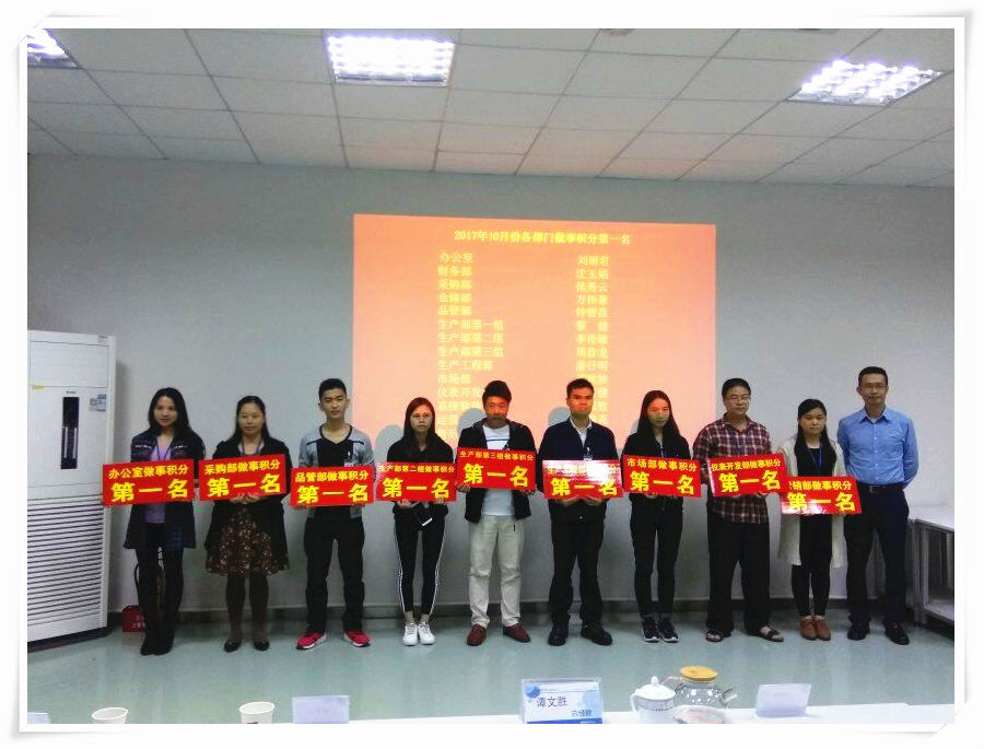 柏誠(chéng)總經(jīng)理譚文勝先生與部門(mén)做事積分第一名合影