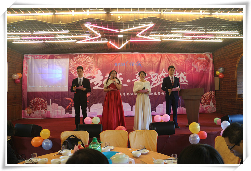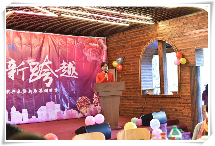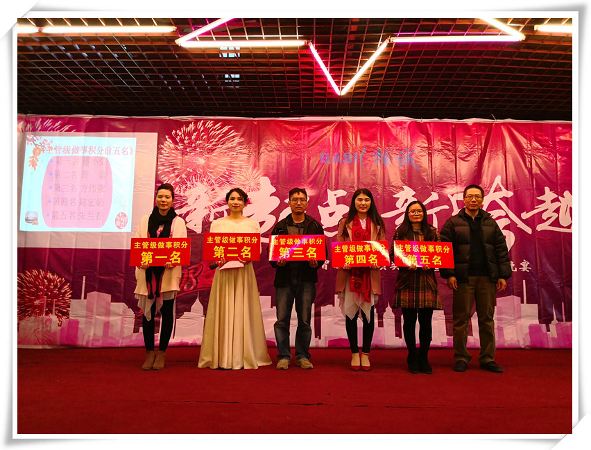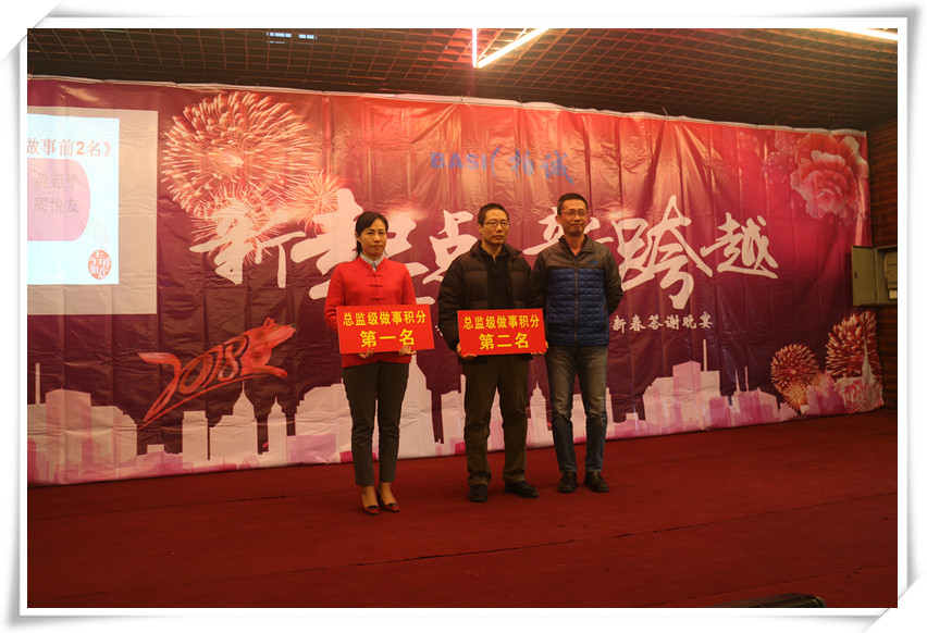 緊接住請出了年會的總策劃常務(wù)副總經(jīng)理黃苑平女士發(fā)表致辭。黃總表示在公司有7個年頭,已經(jīng)舉辦了7個年會和32期快樂會議,感覺就像是看著孩子從出生到7歲的成長,有歡樂與憂愁,但我們都能以積極的心態(tài)去面對,今天要頒發(fā)200多個獎項,其中有32個是現(xiàn)金獎勵,還有100多個抽獎,合計300多個,希望今晚大家一起共享這美好的時刻,共度這一歡樂的夜晚,最后引用習(xí)大大2018和2017名言,幸福都是奮斗出來的,2018擼起袖子加油干,祝大家新年快樂!狗年吉祥!身體健康!萬事如意!