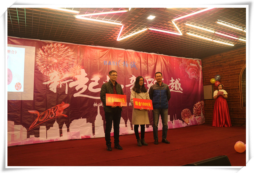 待大家酒足飯飽之后,緊接著是柏誠頒獎環(huán)節(jié)。柏誠公司為2017年優(yōu)秀積極的員工們送上別出心裁的獎品和滿滿的祝福,感謝他們一路以來為柏誠發(fā)展所做出的貢獻(xiàn),并希望他們在未來的發(fā)展進(jìn)程中再接再厲,勇創(chuàng)佳績!