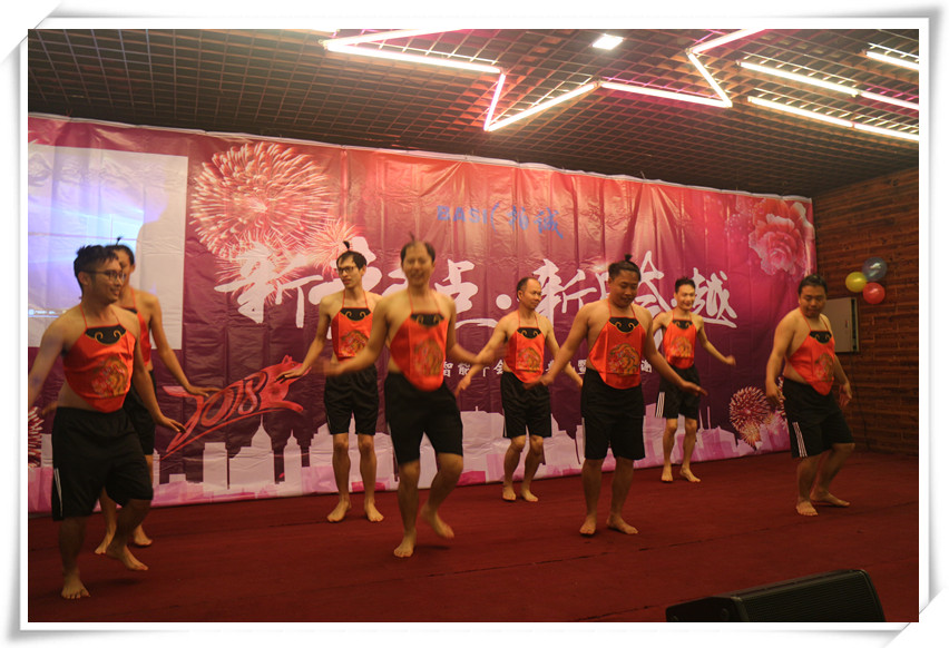來自生產(chǎn)部、倉儲部、PIE部男士們逗趣的舞蹈《春江水暖》合影