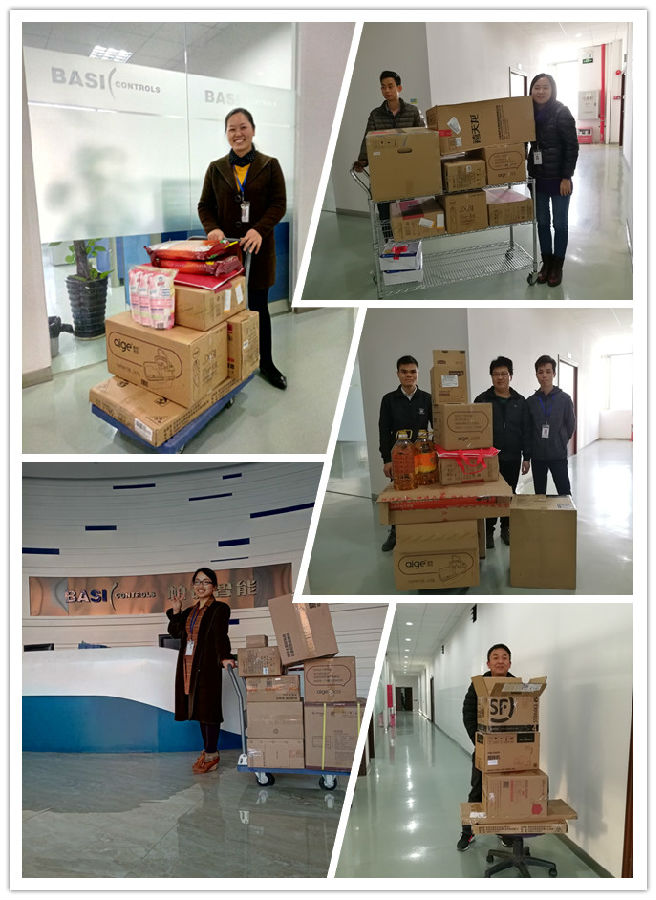 員工們回公司領(lǐng)取獎品留影