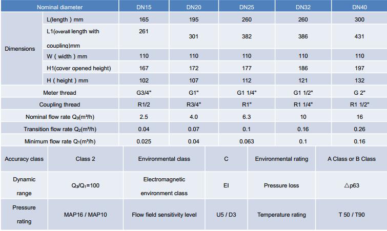 Accord with GB/T778-2007<Measurement of water flow in fully charged closed conduits-Meter for cold potable water and hot water
