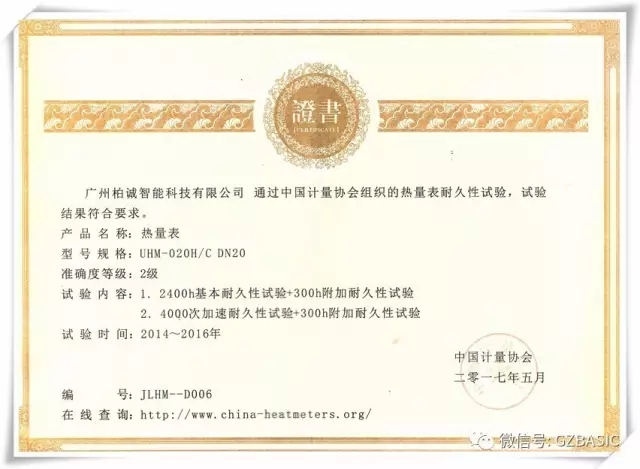 以上兩種形式耐久性試驗(yàn)的結(jié)果表明通過(guò)測(cè)試的國(guó)產(chǎn)熱量表的制造達(dá)到國(guó)際先進(jìn)水平,而廣州柏誠(chéng)智能科技有限公司2014、2015及2016年連續(xù)三年通過(guò)了上述的熱量表耐久性試驗(yàn)。