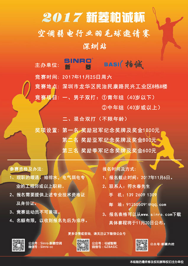 2017年“新菱柏誠(chéng)杯”空調(diào)弱電行業(yè)羽毛球邀請(qǐng)賽(深圳站)于11月25日開(kāi)賽